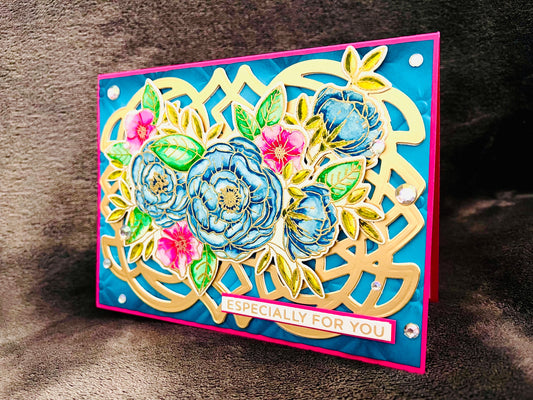 Blue and Pink Watercolor Floral Card with Elegant Design for "Especially for You" Greetings
