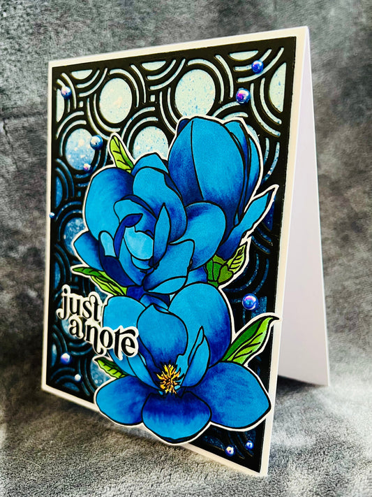 Blue Magnolia Just a Note Blank Card - Elegant Floral Design for Any Occasion