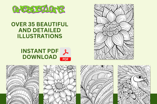 Zentangle Coloring Book: 35 Stress Relief Illustrations (Digital Download)
