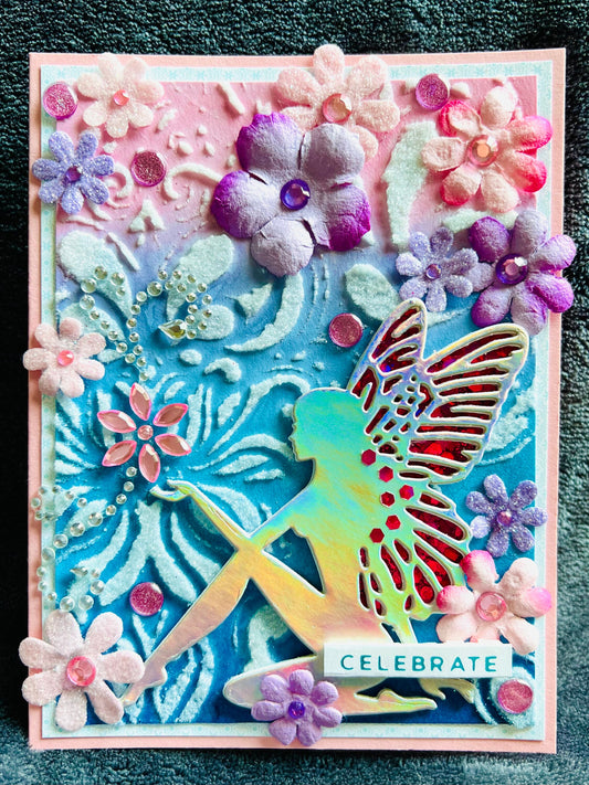 Pastel Celebrate Card with Floral Holographic Fairy - A Magical Whimsy for Special Moments