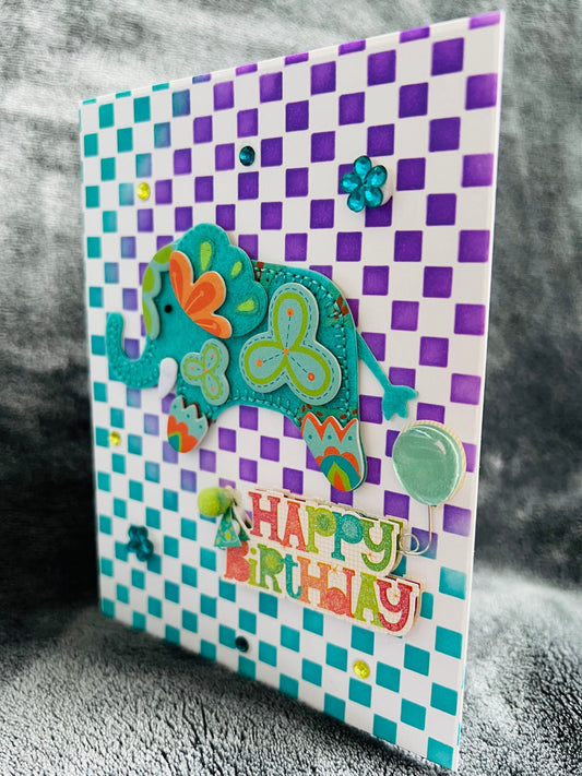 Teal Felt Elephant Birthday Card: Handmade Celebration Card