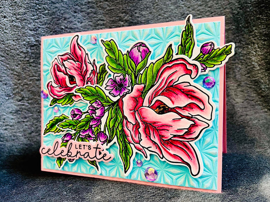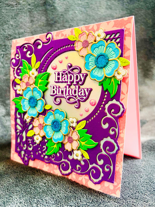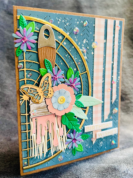 Floral Paintbrush Birthday Card: Diecut Flowers & Gems