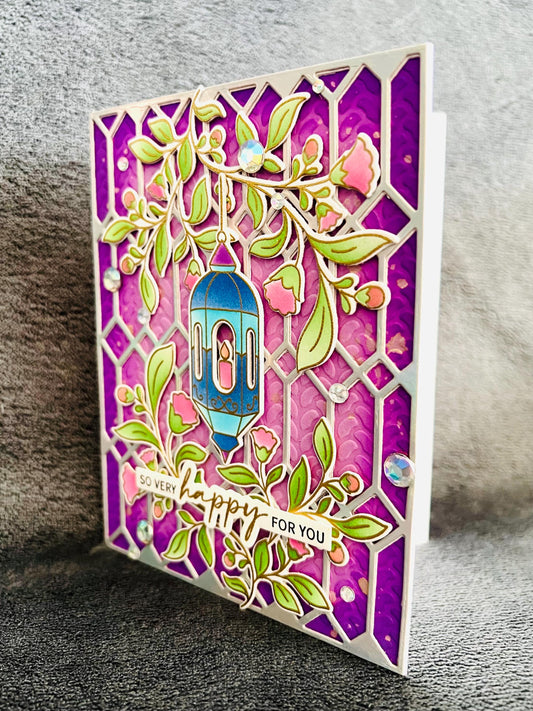 Handmade Embossed Lantern Card: Foliage Congratulations Card
