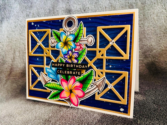 Plumeria Anchor Birthday Card: Tropical Handmade Greeting