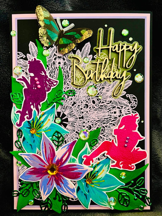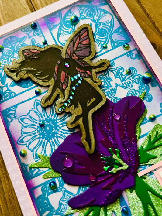 Rainforest Fairy Birthday Card: Gem Accents, Handmade 5x7 Card