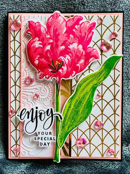 Enjoy Your Special Day, Greeting Card Featuring Parrot Tulip - A Vibrant Wish for a Memorable Celebration