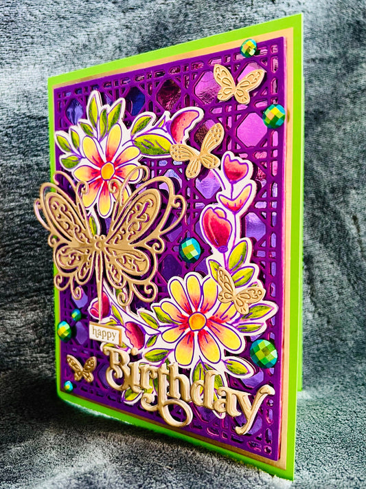 Kaleidoscope Butterflies Birthday Card: Rainbow Foiled Design