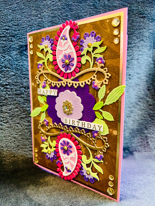 Decorative Floral Paisley Elegant Motif Birthday Card, Stylish Design for a Sophisticated Celebration