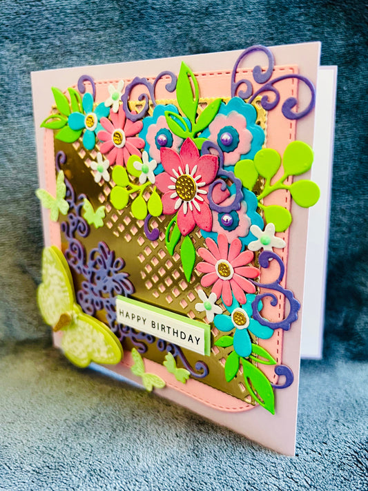 Butterfly Birthday Card: Handmade Floral Embellishments