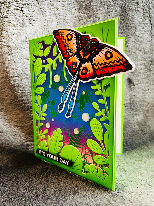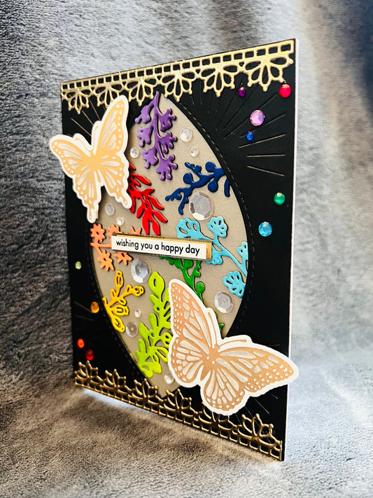 Happy Day Card with Rainbow Plants and Iridescent Butterflies for Joyful Occasions