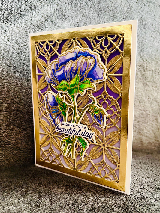 Watercolored Purple Flower Decorative Gold Fence a Beautiful Day Card