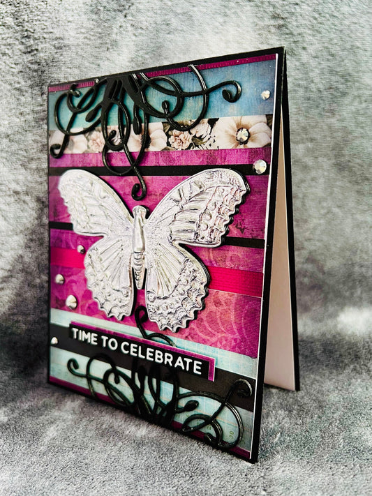 Silver Butterfly "Time to Celebrate" Card - Special Occasion