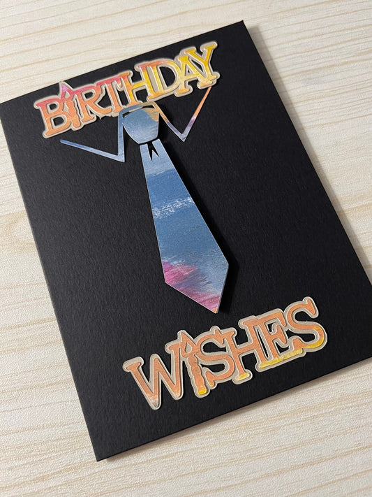 Men's Tie Birthday Card: Black Cardstock, Birthday Wishes