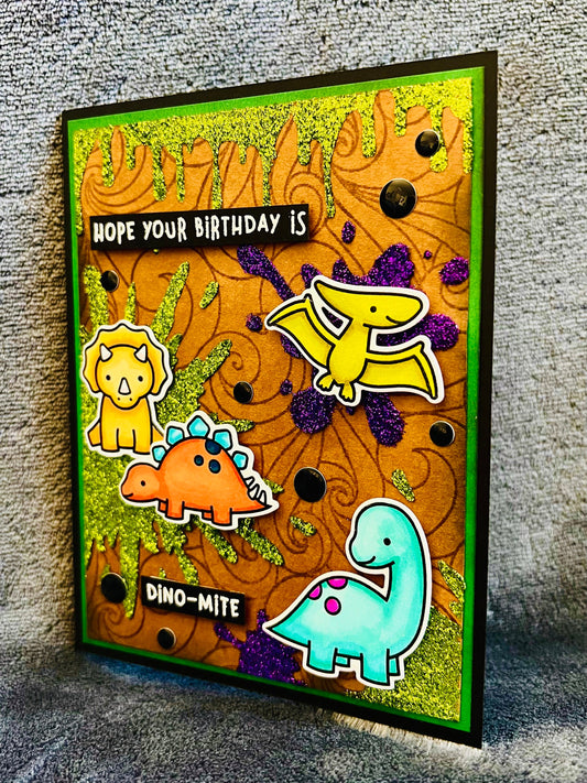 Dinosaur Glitter Splatters Birthday Card, Vibrant and Sparkling Design for a Roaringly Fun Celebration