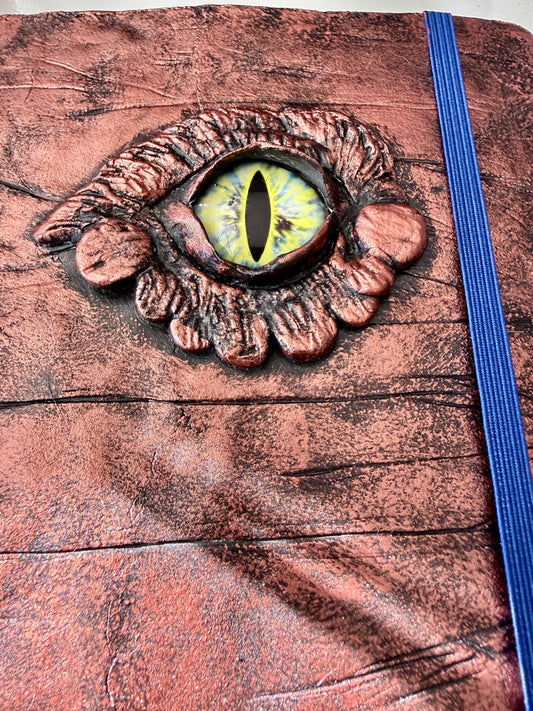Handmade decorative Dragon Eye on a hardcover journal measuring 8.25"x5.5"x1"