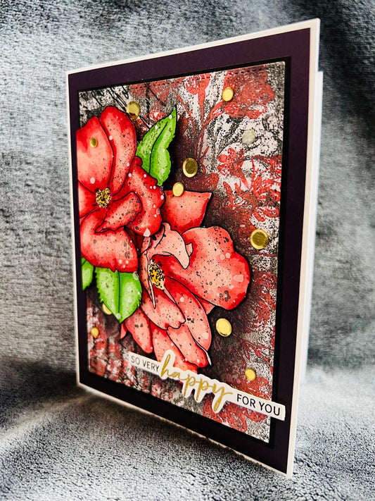 Happy For You Card with Red China Roses - A Romantic Gesture of Celebration