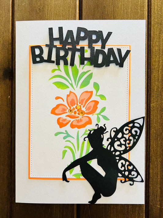 Orange Flowers and Fairy Silhouettes Birthday Card and Blank Card (Total 2 Cards)