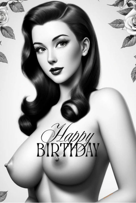 Pin-Up Birthday Card: Glossy Black & White Art Greeting Card