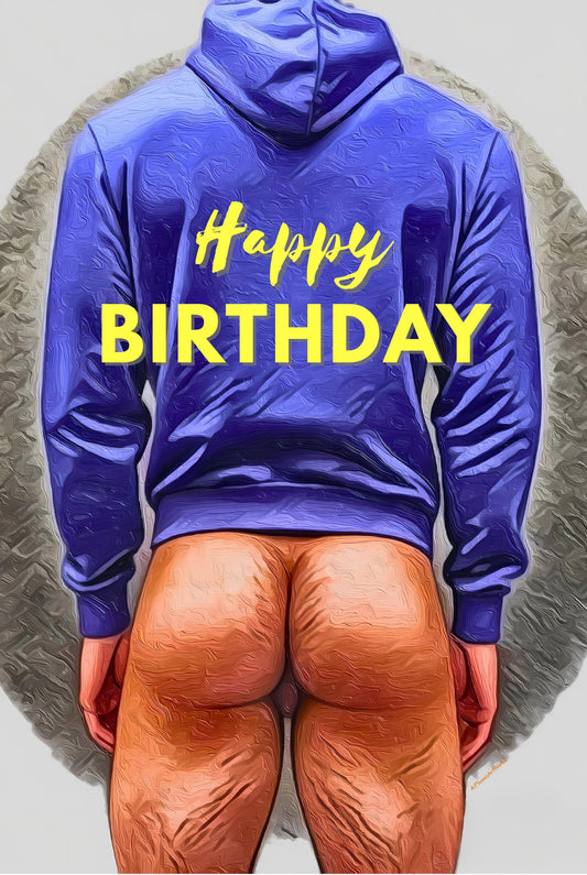Funny Male Nude Birthday Card | Happy Birthday Greeting Card PRINT | Mature Content Adult Humor | Single, 5-Pack, 10-Pack Options
