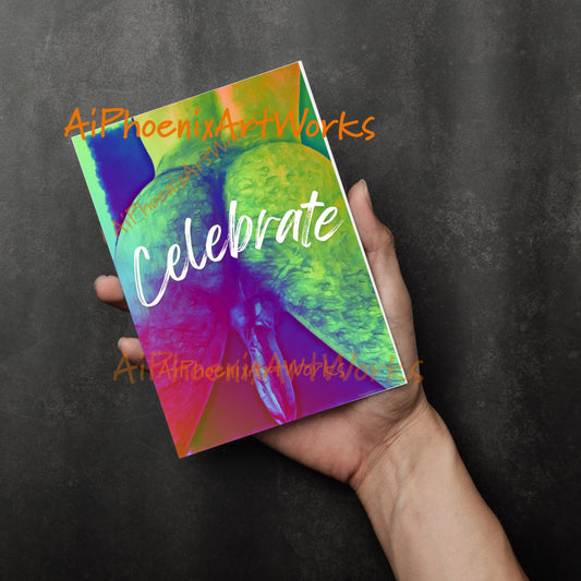 Mature Greeting Card | "Celebrate" | Bold Male Nude Artwork | Erotic Birthday or Celebration Card