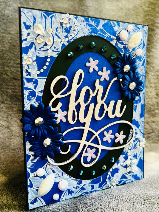 Blue Oval Frame Floral Bejeweled For You Card