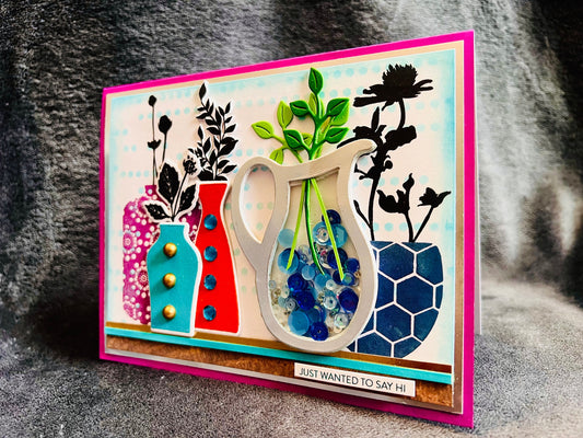 Silhouette Plants and Vases with Shaker Pitcher Vase “Just Wanted to Say Hi” Card