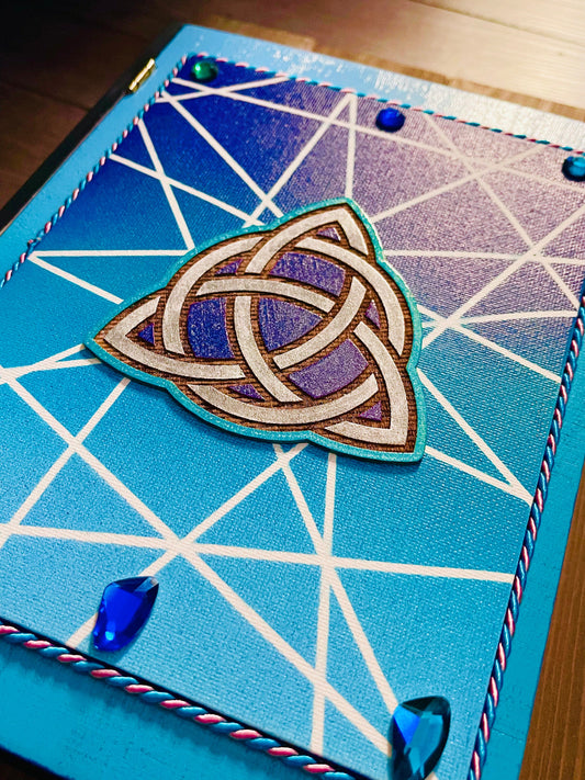 Handmade and Hand-Painted Functional Wooden Book Box with Shadows Triquetra Emblem - A Mystical Keeper for Your Treasures