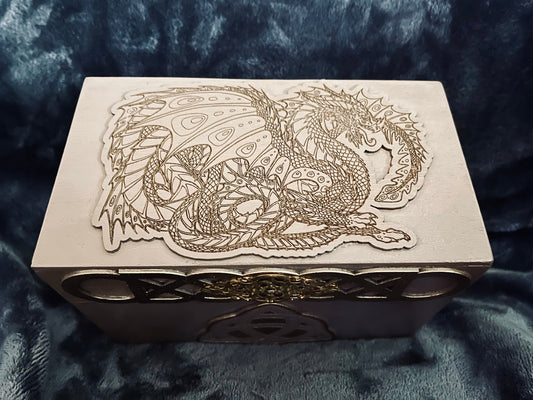 Wooden Keepsake Box: Dragon & Triquetra Celtic Design