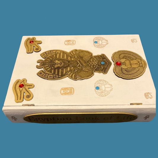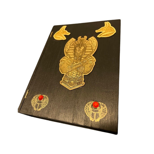 Handmade Egyptian Book Box: Pharaoh & Hieroglyphics, Gold Foil Accents
