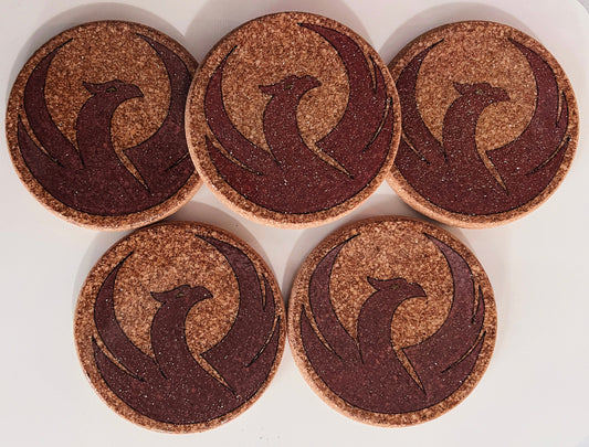 Resin Coated Phoenix Bird Cork Coaster Set of 5 - Elegant and Durable Drink Coasters