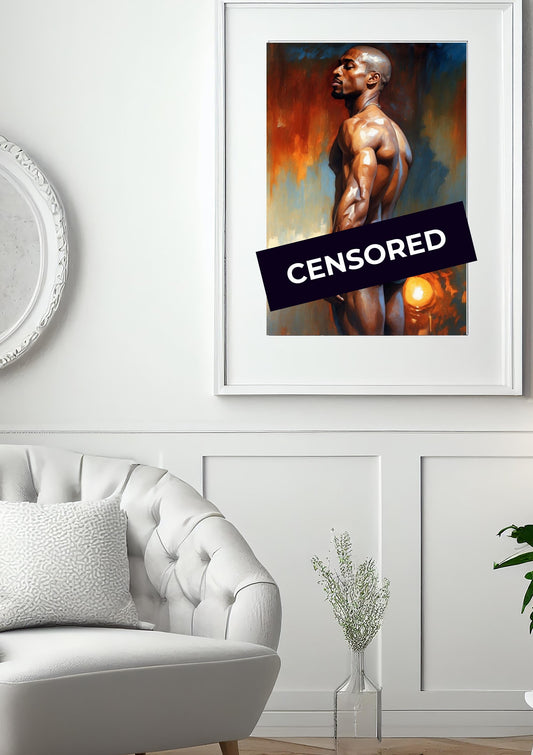 Golden Heat NSFW Male Nude Oil Style Wall Art | Erotic Figurative PRINT | AiPhoenixArtWorks