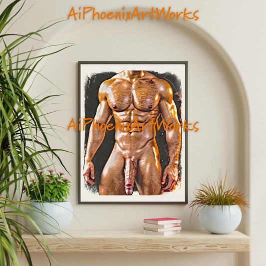 Business Casual | NSFW Gay Erotic Art PRINT | Queer Masculine Nude Wall Art | LGBTQ+ Homoerotic Illustration | AiPhoenixArtWorks