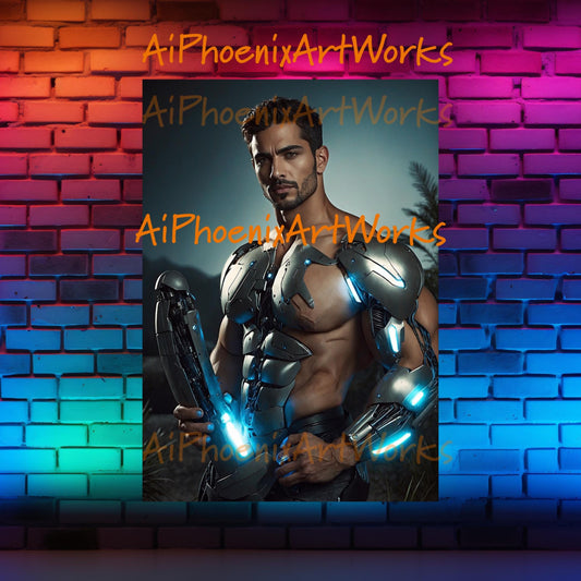 NSFW Cyber Armor Male Art Print | Digital Download PDF | Sci-Fi Fantasy Decor | AiPhoenixArtWorks