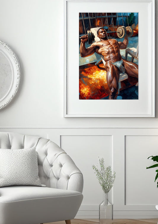 Pressed Power – Erotic Gym Male Art Print | NSFW Fitness-Inspired Wall Decor | Glossy PRINT in 5x7, 8.5x11, or 13x19