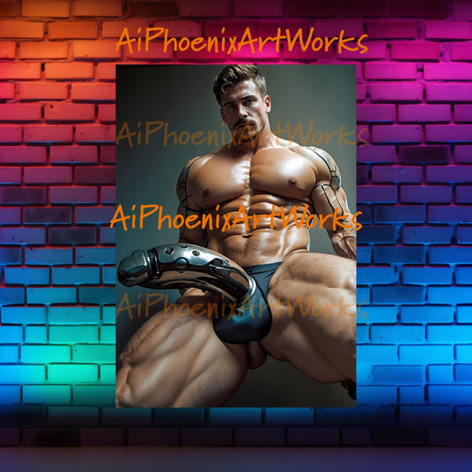 Cyborg Erotic Art PRINT | Futuristic NSFW Poster | Muscular Male SciFi Wall Art | AiPhoenixArtWorks | 3 Sizes Available