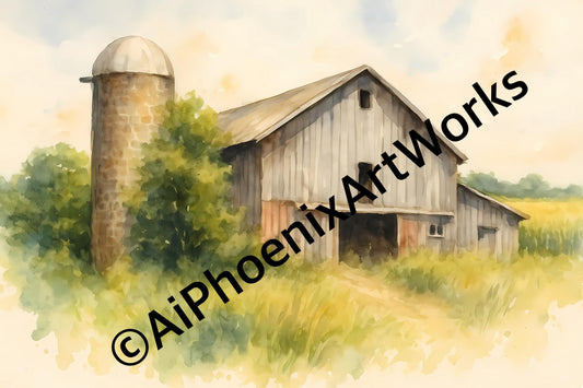 Rustic Barn Watercolor Print Set: Vintage Farmhouse Decor (Digital Download)