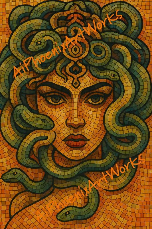 Medusa Mosaic Art Print: Fierce Gaze, Greek Mythology (Digital Download)