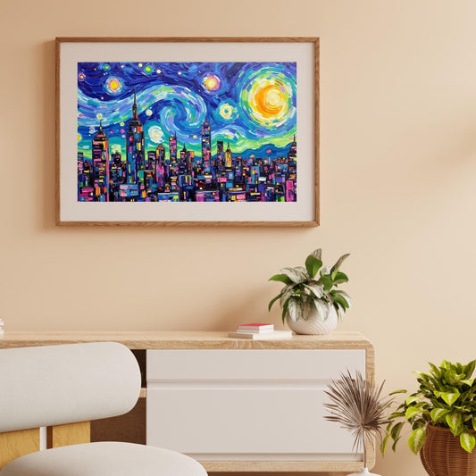 Starry Skyline | Vibrant Cityscape Digital Art Print | Instant Download