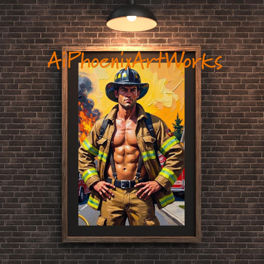 Firefighter Art Print Set: Heroic Muscle Pin-Up Decor