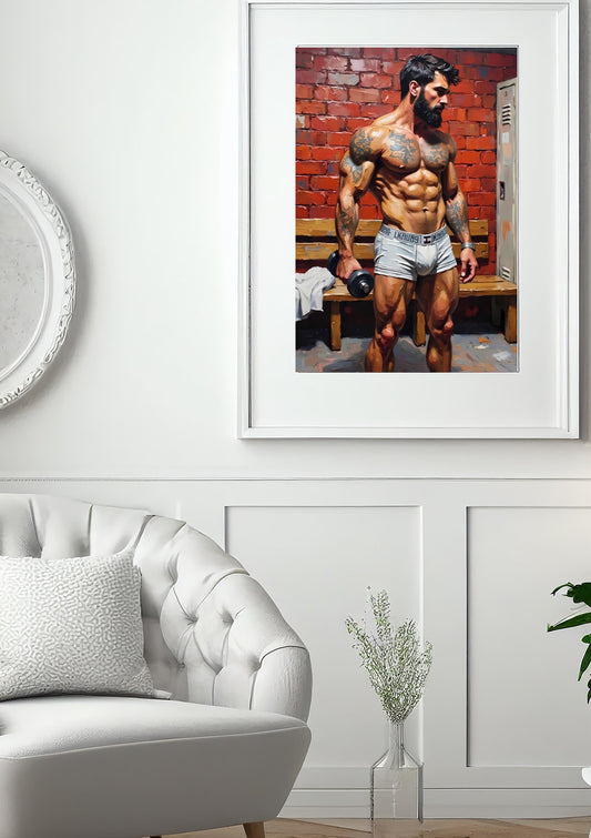 Muscular Gym Print: Erotic Male Physique, Fitness Wall Art