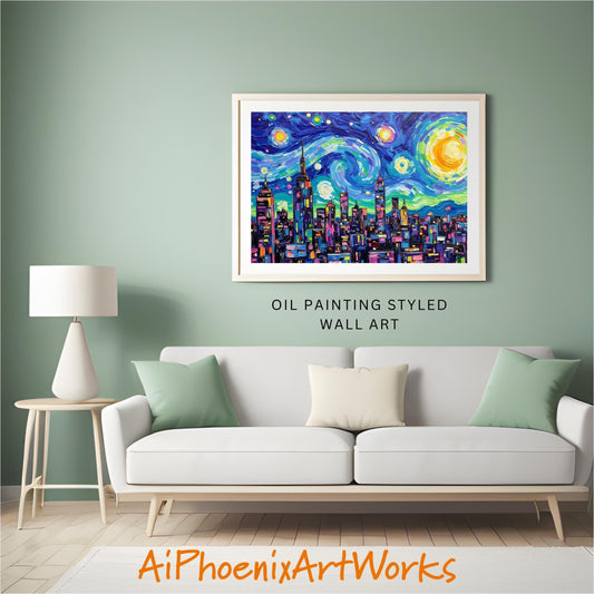 Starry Skyline | Vibrant Cityscape Art PRINT| Wall Decor | Lab Quality Print