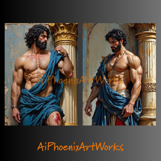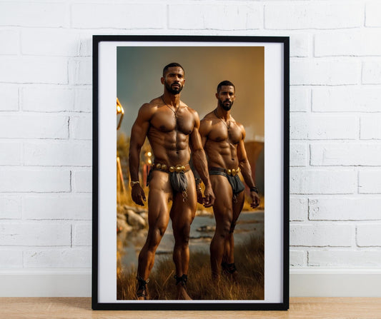 Black Male Warrior Art PRINT | Erotic Fantasy Poster | Ancient Strength & Brotherhood | AiPhoenixArtWorks