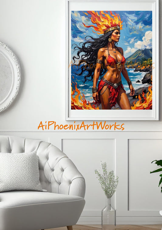 Goddess of Fire Art Print: Mythological Warrior Woman Fantasy Decor