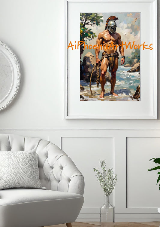 Spartan Tide Warrior Male Nude Art Print | Mythical Masculinity Wall Decor | Glossy Premium PRINT in 5x7, 8.5x11, or 13x19