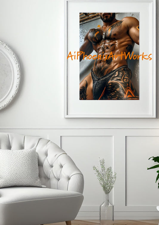 Inferno Ink: Tattooed Desire | NSFW Art PRINT | AiPhoenixArtWorks | 3 Sizes Available
