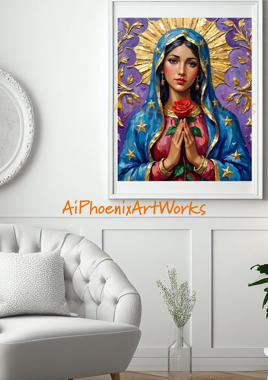 Virgin Mary Art Print: Religious Icon, Catholic Wall Decor