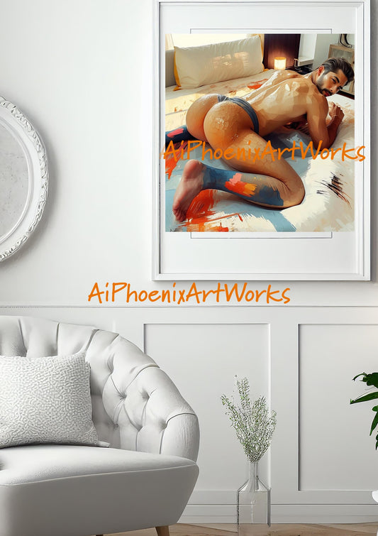 Male Erotic Art PRINT | Geometric Abstract Nude Illustration | Gay Boudoir Wall Art | Square Sizes | AiPhoenixArtWorks (Mature)