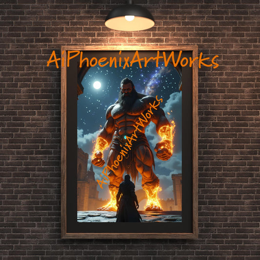 Fire Giant Warrior Art Print: Mythical Titan Illustration (13x19 Glossy Poster)