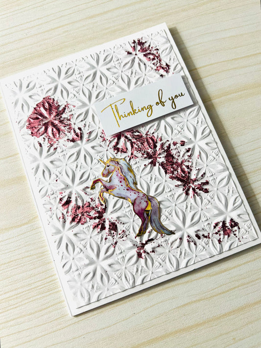 Unicorn Pink Foil Flaked Embossed Star Pattern Thinking of You Card