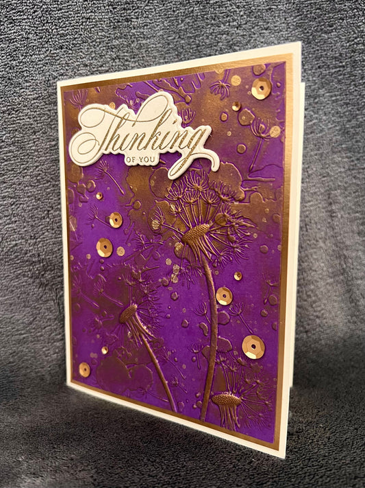 Gold Sheen Embossed Dandelions Thinking of You Card - Elegant and Thoughtful Greeting